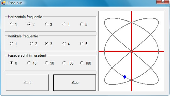 bijbehorende Lissajous-kromme. Hieronder vind je een momentopname:
