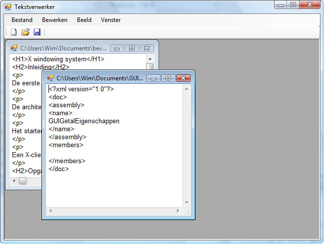Schrijf een MDI-applicatie waarmee tekstbestanden kunnen verwerkt