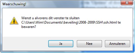 of hij eerst de tekst wil opslaan alvorens af te sluiten.