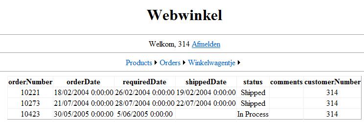Wanneer een customer op de link Orders->List klikt krijgt hij een overzicht te zien van zijn eigen orders. De pagina zal er als volgt uitzien.