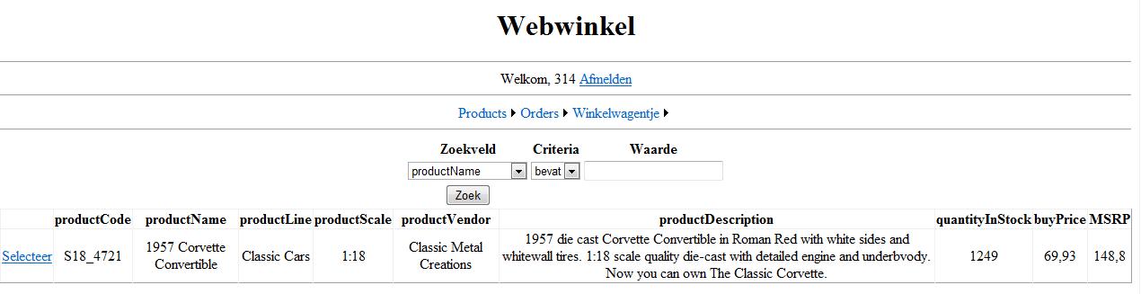 - priceEach: is de waarde MSRP die je in de details van het gekozen product kan vinden.