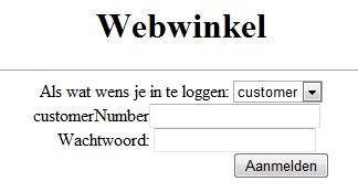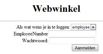 Bovenaan de pagina staat een dropdownlist met twee keuzes, nl. employee en customer. Deze keuze bepaalt of je inlogt als employee of customer.