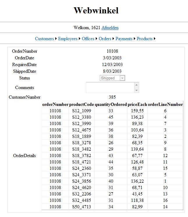 - customerNumber: nummer van de ingelogde persoon die het order plaatst.