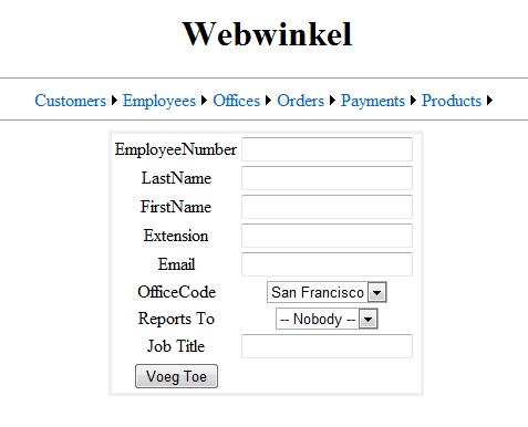 Maak de pagina employees.aspx waarmee een gebruiker een nieuw employee kan toevoegen aan de databank.De vorm van de pagina kan je hier vinden.