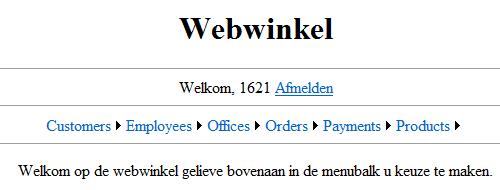 Zoals te zien in de figuur verschijnt op iedere pagina het menu, die menu zal natuurlijk verschillen indien je een customer bent of een employee. Onderaan verschijnt de pagina die jij gekozen hebt.
