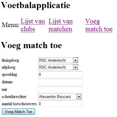 Maak een jsf-pagina voor het toevoegen van een nieuwe match. Deze pagina ziet er als volgt uit: