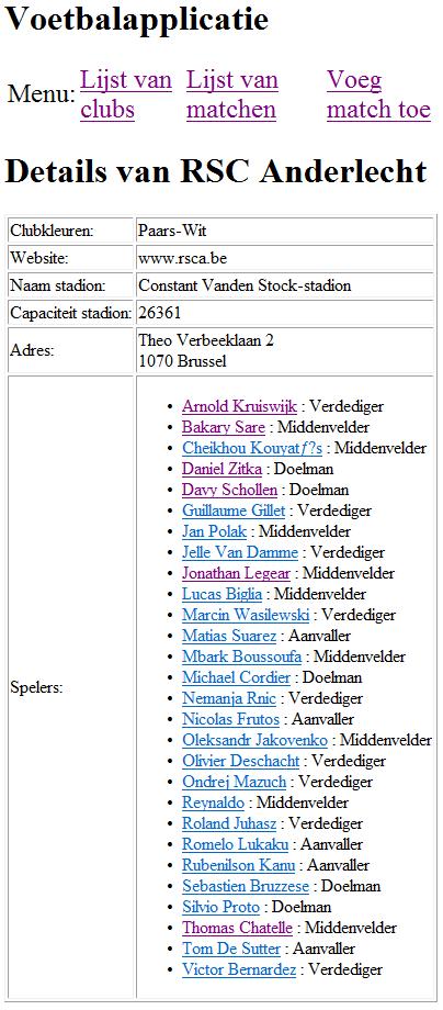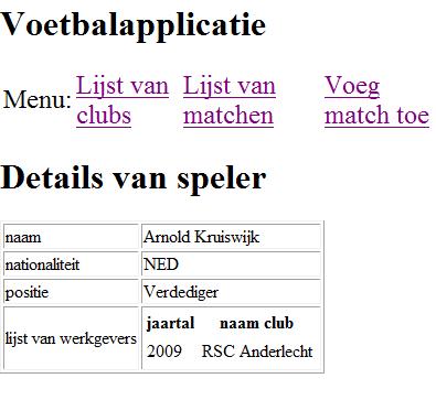 Bij het klikken op een speler word je doorverwezen naar speler.jsp. Deze pagina werk je volledig uit met jsf en ziet er als volgt uit: