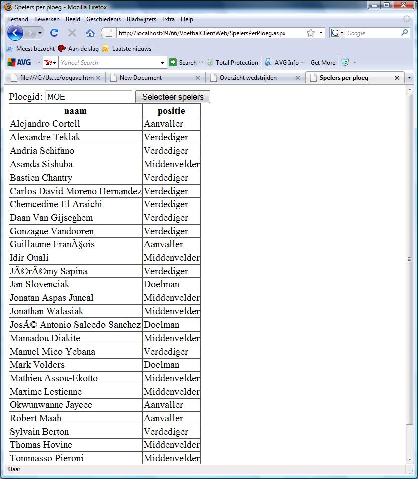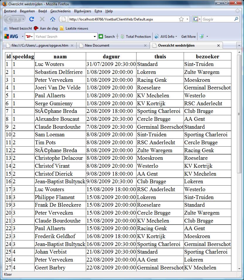 Maak een website TestVoetbalDataLaag waarin je je datalaag uittest, zonder gebruik te maken van remoting. Maak twee webformulieren (zie ook figuren onderaan deze pagina):